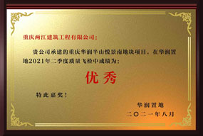重庆华润半山悦景项目荣获华润置地集团2021年二季度质量飞检成绩优秀