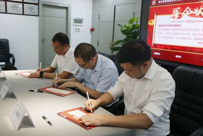6月21日,我司召开了2023年工期目标管理军令状签订会,公司全体项目经理、职能部门负责人、分管领导、独立董事及总经理参加了此次会议。